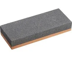 Slijpsteen, 2-zijdig. Voor nat slijpen. Met twee verschillende korrelgrootten: P120 (grijze zijde) en P280 (bruine zijde).