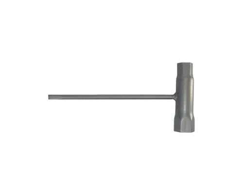 Combinatie van bougiesleutel met haaks daarop een schroevendraaier voor sleufkopschroeven.