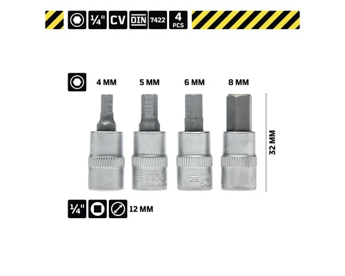 WGB Doppenset 1/4″ Met Bitinzet, 4-delig