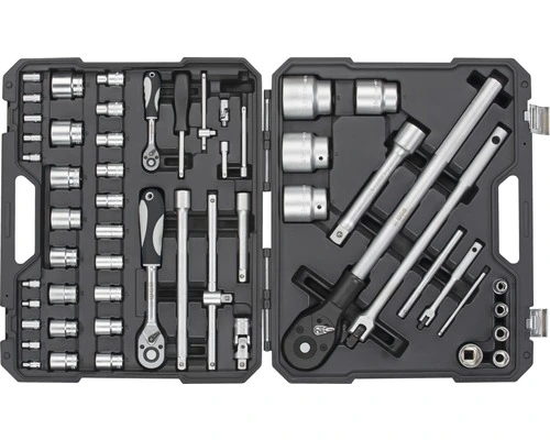 | Set bestaand uit | 1/4“ omschakelbare ratel met pal 72 tanden 160 mm, 1/4“ steeksleutel-inzetrn6-kant 4-5-6-7-8-9-10 mm, 1/4“ steeksleutel-inzet 6-kant 3/16“-1/4“-3/8“, 1/4“ verlenging 50-100 mm, 1/4“ greep met glijstuk 110 mm, 1/4“ cardan-koppeling, 1/4“ steekgreep met 1/4“ aandrijfvierkant, 1/4“ kruiskoppelingsgreep 13 x 135 mm met 7 mm gat, draaistift 6,35 x 110 mm, 1/2“ omschakelbare ratel met pal 72 tanden 260 mm, 1/2“ steeksleutel-inzetrn6-kant 10-11-12-13-14-15-16-17-18-19-20-rn21-22-24-26-27-30-32 mm, 1/2“ steeksleutel-inzet 6-kantrn9/16“-11/16“-3/8“-1/2“-1“, 1/2“ verlenging 125-250 mm, 1/2“ greep met glijstuk 250 mm, 1/2“ cardan-koppeling, 1/2“ kruiskoppelingsgreep 13 x 380 mm met 13 mm gat, draaistift 12 x 150 mm, 3/4“ omschakelbare ratel met pal 24 tanden 490 mmrn2000 Nm draaimoment, 3/4“ steeksleutel-inzetrn6-kant 36-38-41-46 mm, 3/4“ verlenging 200 mm |