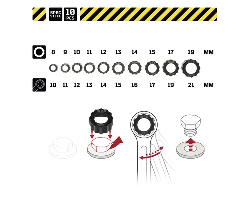 WGB Uitdraai-ringset Voor Afgeronde Moeren En Bouten, 10-delig