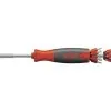 In de pluggat-slagschroevendraaier zit meer dan het oog ziet. Een bijzondere inwendige constructie scheidt galvanisch de schacht van de stalen kap. Daardoor is het gereedschap bij uitstek geschikt om snel en ongecompliceerd pluggaten te slaan. Zonder boormachine. Zonder rotzooi. Zonder continu lawaai. Door de galvanische scheiding tussen schacht en stalen kap is de gebruiker te allen tijde beschermd, ook als er per ongeluk een elektrische leiding wordt geraakt. En passant is ook het profiel zo geoptimaliseerd, dat afsplinteren bij het inslaan in de wand zoveel mogelijk wordt voorkomen. De op de schacht aangebrachte schaalverdeling toont de gebruiker snel en comfortabel hoe diep het gat al is. De softzone van de ergonomisch gevormde samengestelde SoftFinish-handgreep bestaat uit speciaal huidvriendelijk materiaal en ligt aangenaam in de hand.