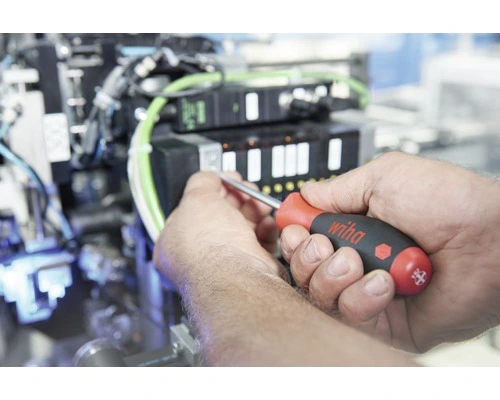 Bij handmatig schroeven worden op den duur polsen en spieren zwaar belast. Uitkomst biedt hier de zeer ergonomisch gevormde SoftFinish schroevendraaier, die zorgt voor een optimale overdracht van de handkracht. Met de lange, slanke handgreepafmetingen kunnen kleine schroeven betrouwbaar en snel worden ingedraaid. Voor het indraaien van grote schroeven zijn er forsere handgrepen waarmee de vereiste hogere momenten kunnen worden uitgeoefend. Daarnaast zijn de diverse handgreepmaten aangepast aan de steeds gelijke afmetingen van de hand van de professional. De wegrolbeveiliging en het schroefsymbool op het uiteinde van de handgreep zorgen voor efficiënt werken. Dankzij de optimale hanteerbaarheid is de SoftFinish-schroevendraaier zeer geschikt voor toepassingen in droge omgevingen. De positie van harde en zachte delen op de handgreep ondersteunt een perfecte grip bij snel en krachtig draaien.