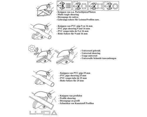 Multi-functionele knipschaar met 5 verwisselbare bekken. Geschikt voor het knippen van:
