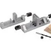 Dit slimme hulpmiddel is een kosteneffectieve oplossing voor het markeren van tegenoverliggende boorposities voor houtdeuvelverbindingen. De set bevat 4 deuvelbevestigingen van robuust staal. Deze hebben een schacht die u in het geboorde deuvelgat van het eerste deel van uw werkstuk steekt. De andere kant van de deuvelbevestiging is voorzien van een metalen punt waarmee u de correcte boorpositie kunt markeren op het andere deel van uw werkstuk. Schuif de delen dicht tegen elkaar aan en lijn deze correct op elkaar uit. Als u de planken nu tegen elkaar drukt, boren de metalen punten van de deuvelbevestiging in het hout van de tegenoverliggende plank, waardoor de boorpositie voor de aansluitende deuvelboringen wordt gemarkeerd.