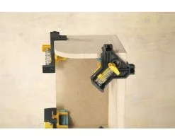 De hoekspanner ES 22 fixeert planken en frame, snel en eenvoudig, in een hoek van 90°. Bij uitstek geschikt voor het bouwen van schappen, kleine kastjes of frames. Voor hoek- en T-verbindingen. Praktische eenhands-bediening, de tweede blijft vrij voor je werkstuk. Boren en schroeven in slechts één handeling in beide planken. Fixeren van verschillende plankdiktes mogelijk, aangezien de spanwijdte zich automatisch aanpast. Zachte, anti-slip zones beveiligen en beschermen het werkstuk. Robuust design met ergonomisch handvat.